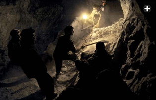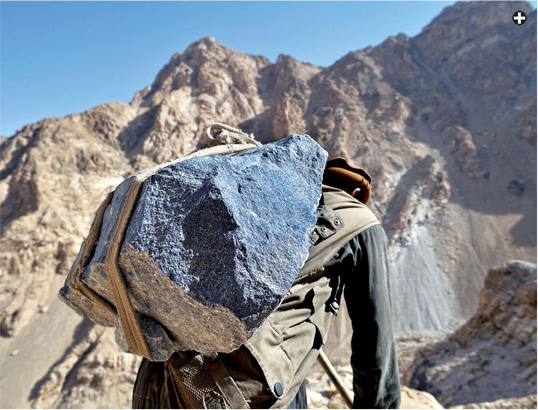 | 约 7000 年来,在阿富汗最偏僻的地区之一——巴达赫尚,矿工们在摇摇欲坠的岩石间挖掘隧道,劈山炸石,开采矿山里的青金石。 |