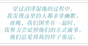 穿过沼泽湿地的过程中,我发现这里的人都非常幽默。夜晚,我们围坐在一起时,我努力尝试照他们的方式做事,并很糟糕得试图说阿拉伯语,他们总觉得我的样子很逗。 他们中有些人还教我说粗话。 每次我说粗话时,总会引起强烈反响。 逗得他们哈哈大笑。