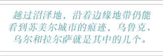 越过沼泽地,沿着边缘地带仍能看到苏美尔城市的痕迹,乌鲁克、乌尔和拉尔萨就是其中的几个。 如今,这些文明都已衰败并消失——只有一个例外: 居住在沼泽地称自己为“马丹”的人们,“马丹”一词一般意为“平原居民”;他们在英语中被称为“沼泽地阿拉伯人”。