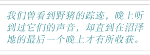 我们只能保持不动。 就在这时,一头野猪发出哼哼声,它们就都转身跑入芦苇地。